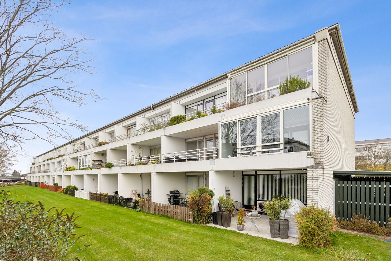 Lejligheden ligger i et trygt og grønt område på Bogensevej, hvor bordbænkesæt og åbne arealer skaber en rolig atmosfære. Ejendommen fra 1973 har en særlig terrasseopbygning, og her får du en stor, sydvendt altan – perfekt til loungemøbler og en bog i solen. Her er fællesarealerne gode med parkering, el-ladestander, et kælderrum og en cykelkælder.