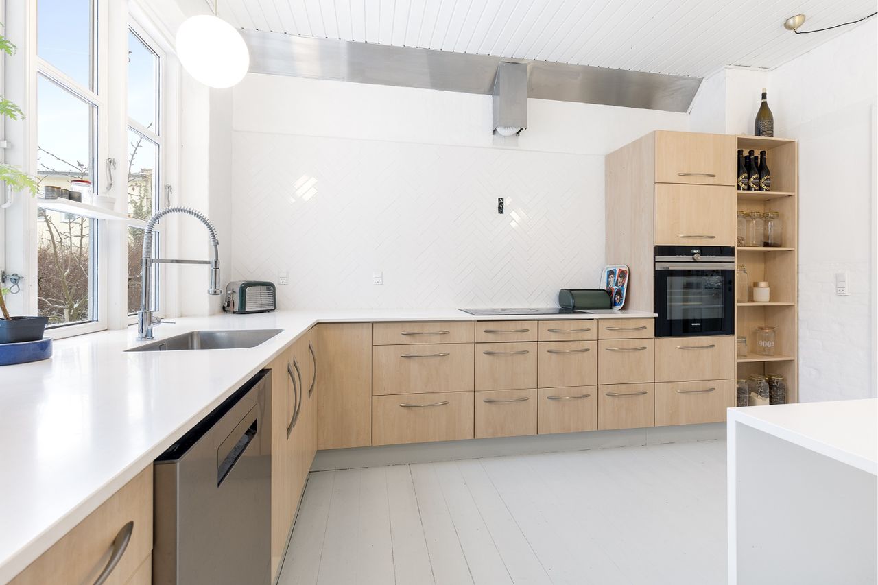moderne stil. I stueplan får I en dejlig stor vinkelstue med et fantastisk lysindfald, hvorfra der også er