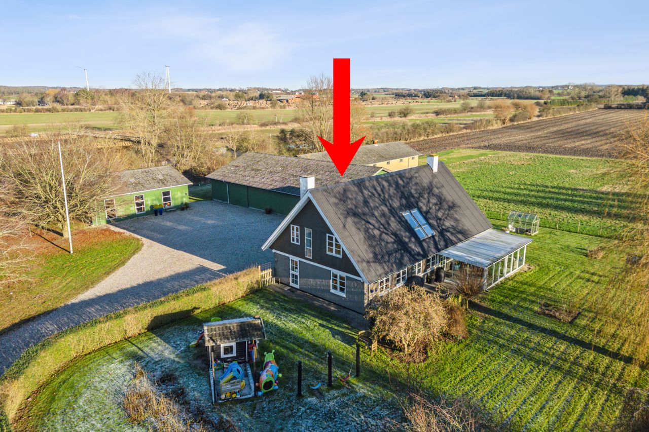 Mulighederne står i kø herhjemme og med stald, hal og festsal kan I både have heste, drive erhverv hjemmefra og huse de helt store fester, f.eks. driver sælger en privat dagpleje. Der kan være fold udenfor, eller måske I har andre idéer? Ja, det er næsten kun fantasien, der sætter grænser, for plads er der nok af inde som ude. Der er også mulighed for en indtægt idet bortforpagtningen af de 9,5 hektar landbrugsjord kan fortsættes. Selve stuehuset er væsentligt nyere end de fleste gårde i området, idet det kun har stået her siden 1976 og præsenterer sig i dag rigtig fint og velholdt – vi kan bl.a. nævne, at taget blev malet og renset i 2024.