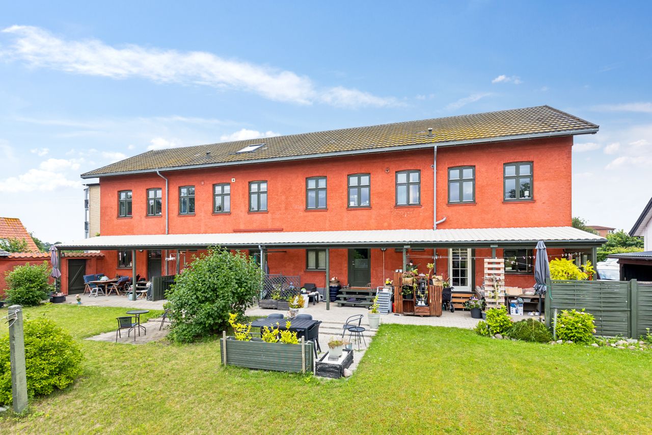Du skal se nærmere på en nydelig rød murstensejendom. Bygningen stod færdig i år 1900, og omme bagtil gemmer der sig en rigtig god have, som du deler med de andre beboere. Haven er stor, vestvendt og lukket, og der er både græs og solvarme fliseterrasser at tage i brug på dejlige sommerdage.