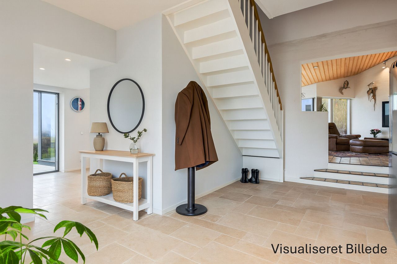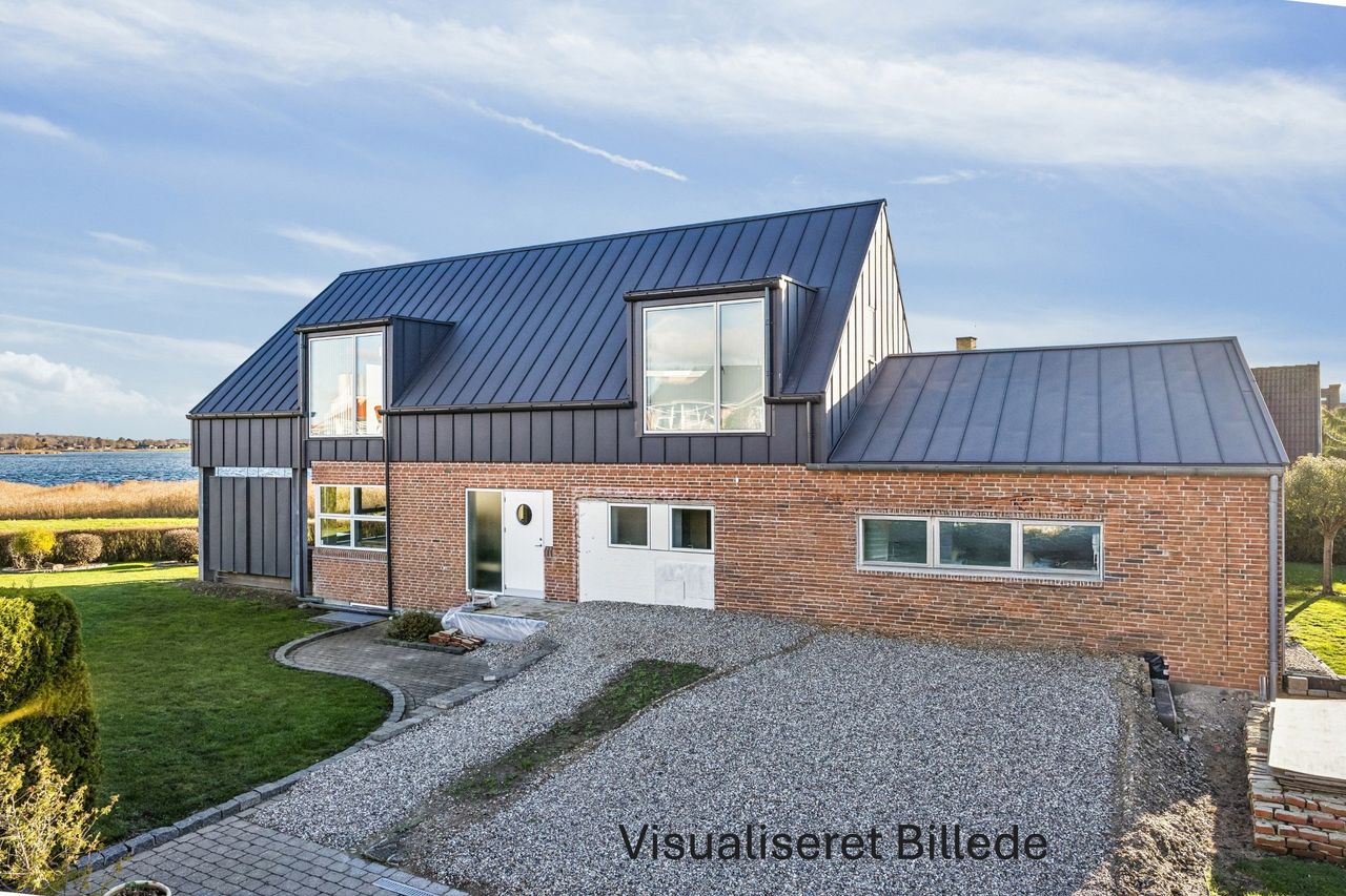 Du bydes velkommen af en arkitekttegnet og fuldmuret villa, der ligger i 1. parket til fjorden. Ejendommen breder sig over hele 390 etagemeter med gulvvarme i alle rum i stueplan og på førstesal, forsynet af en ny varmepumpe, travertin-gulve i stueetagen og træ/egelaminat på den nye førstesal, der prydes af hvid Troldtekt loftsbeklædning, som giver en god akustik.