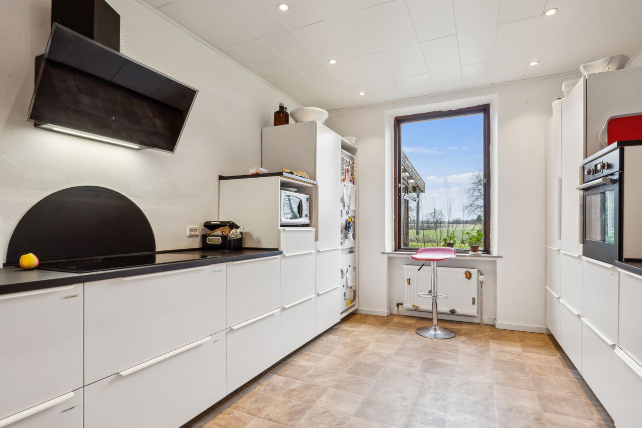 Stuehuset ligger tilbagetrukket fra Tvindelstrupvej og orienterer sig mod den dejlige markudsigt. Har I lyst, kan I fuldspartle huset, så facaden matcher de hvide udbygninger, for ingen lokalplan står i vejen. Der er desuden jordvarme og solceller, så der er lave varme- og eludgifter for så stor en ejendom.